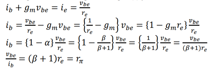 The base current drive should have the input resistance r pi; which comes out from this derivation